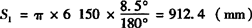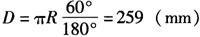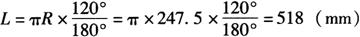 S2=πr/n=π×247.5/3=259(mm) 展开料上端所对半圆心角α1:
