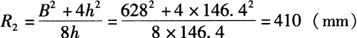 (2)瓜瓣侧弧弧长及半径的计算: B=L+2e=518+2×54.8≈628(mm) 根据相交弦定理可得