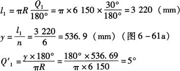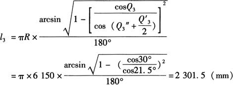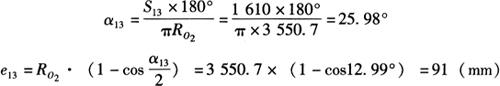 其中 Q″3=13°,S1=2790.8mm,S2=π×6126.5×