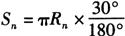 3.极带中央板的计算展开 相关参数如半纵向中心弧长l4、纵向每等份弧长y、每等份所对球心角Q、各等分点所处截圆半径为Rn、各等分点横向弧长Sn及端口半径RO2和边沿半弧长l″4等(图6-62c),计算如下: