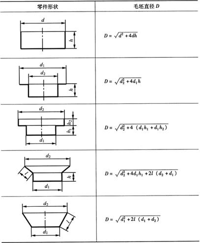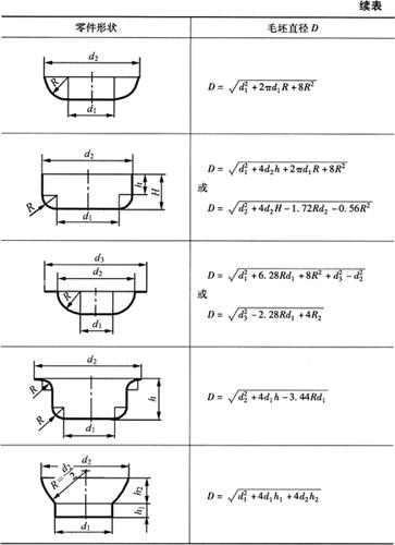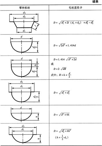 根据等面积计算原则,一些常用旋转体拉深件坯料计算公式列于表6-2。 表6-2 常用旋转体拉深件坯料直径的计算式(mm)