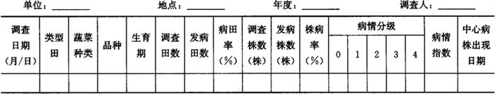在枯萎病发生后,进行大面积普查。普查时选用代表性大田或保护地20~25个。每块田采取对角线5点取样,每点前期取20株,中、后期取10株,大田调查一般进行3~5次。将调查结果记入表6-54。