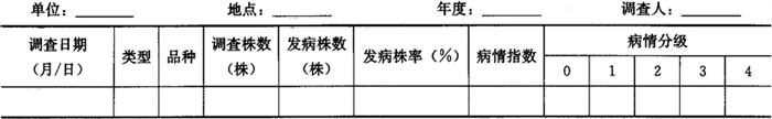2.2 收获期病情普查 在甘薯收获时,调查当地主栽品种,5点取样,每点20株。记载病株数、病薯块数及薯块发病程度。调查结果记入表4-155。 表4-155 收获期甘薯瘟病病情调查表