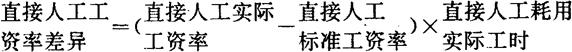 通过上述计算可见A公司该同C材料的实际耗用量低于标准耗用量1600元,有很大成绩。 直接材料数量差异,一般是反映生产中材料的节约和浪费,这主要应由生产部门负责。如果出现直接材料实际耗用量高于标准耗用量,即发生不利差异,应及时追查生产部门的责任,这种情况的发生主要原因一般为工人用料不注意节约,或由于技术水平低,操作过程中造成的损失浪费大。如果出现有利差异,即直接材料的实际耗用量低于标准用量,如本例,则应注意巩固生产部门的实绩。 二、直接人工成本差异 直接人工成本差异是指直接人工的标准成本与直接人工的实际成本之间的差额。其计算公式为: