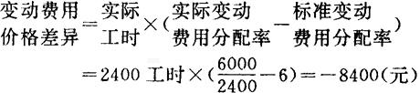 〔例5〕依前例A公司该月实际支付变动制造费用6000元,标准变动制造费用价格为6元/小时,其变动费用价格差异应为多少? 解:根据上述公式,将已和条件代入