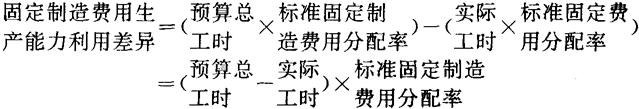 计算结果可见,A公司该月份固定制造费用效率差异为不利差异2880元 (三)固定制造费用生产能力利用差异 固定制造费用生产能力利用差异是指由于生产能力利用程度不同而形成的固定制造费用的差异数。其计算公式如下,