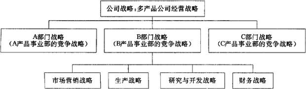 | 释义 | 生产战略与产品竞争战略 1.生产战略理论 当提及“生产战略”或“制造战略”时,可能会有人认为,“生产管理居然也有战略可言?”但是,从第一章有关部分的讨论中已经可以看出,现代生产管理与传统的生产管理相比,已经发生了很大的变化,因而也随之带来了许多新课题。其中之一,即为生产管理中的战略决策问题。因此,现在已不再需要考虑生产中应不应有战略作指导的问题,而是应考虑究竟什么是生产战略,它在企业对生产系统的要求与生产系统所具备的能力之间究竟如何发挥联接作用的问题。 (1)生产战略的概念 ①生产战略 生产战略是企业根据所选定的目标市场和产品特点来构造其生产系统时所遵循的指导思想,以及在这种指导思想下的一系列决策规划、内容和程序。作为一系列决策的结果,生产战略是关于生产系统如何成为企业立足于市场、并获得竞争优势的战略性计划;作为一系列决策的过程,生产战略为实现生产系统在企业中的有效性规定了明确的决策内容、程序、原则和模式。因此,生产战略具有三个特点:第一,贡献性,它强调对企业竞争优势的贡献,通过对产品目标的明细化使生产系统功能具有优先级而保证竞争优势的突出,为企业竞争提供了坚实的产品和后援保障;第二,一致性,它强调生产系统与企业要求的一致性,同时也强调生产系统内部结构与非结构要素的一致、协调关系,以此来保证整个生产系统的目标及其优先级;第三,操作性,它强调战略既是一种计划思想,又应便于贯彻实施,因此它注意各个决策之间的目标分解、传递和转化过程以形成各级人员的共识和参与,同时并注意各项决策的内涵及其相互一致性以保证决策的实施明确、可行。 ②生产战略的地位与作用 生产战略对于保证生产系统的有效性无疑是至关重要的,但它毕竟不是整个企业的战略;它能够对公司的某种产品提供市场竞争优势的保障,但由于目标市场的差异,这种战略一般并不适用于公司内的其它产品。根据决策内容的特点,一般企业的战略都可被分为三个层次:公司级战略、部门级战略和职能级战略,生产战略属于职能级战略,担负着支持部门(或产品)战略的义务,它们之间的关系如图4.2.1-1示。在企业战略的最高层是有关整个公司经营内容、从事何种事业、具有什么使命、如何调配资源的总体经营战略;中间层是各个不同产品事业部的竞争战略,它要对部门的经营内容及其在市场上竞争优势的取得进行战略分析与规划,如果某一企业只是单一产品经营,没有事业部划分,公司战略与部门战略则是同一种战略,内容可合二为一;第三层是部门内的职能战略,其内容除了对各自职能、使命的定义外,更重要的是明确部门对各职能规定的目标,以及实现这些目标的战略措施。