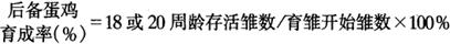 | 释义 | 生产技术指标分析 1.雏鸡成活率(也叫育雏率) 通常指育雏期内(0~6周)雏鸡成活百分率。一般应在93%以上。 雏鸡成活率(%)=育雏期末雏数/育雏开始雏数×100% 2.育成率 通常指育成期内(7~18或20周)雏鸡成活率。这一阶段的鸡叫育成鸡或青年鸡。 育成率(%)=育成期末雏数/育成期初雏数×100% 育成率是决定育成是否成功的最重要的指标。一般鸡群育成率约在95%以上;管理良好的鸡群,育成率一般都能达到98%以上。若低80%的育成率,无论产蛋成绩如何好,也决定本批鸡没有好的经济效益。 3.后备蛋鸡育成率 通常指0~18或20周龄雏鸡成活率。