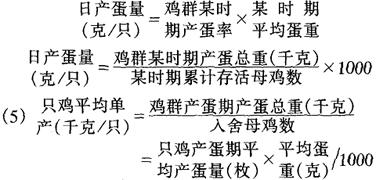 (4)日产蛋量 估计1群鸡的产蛋水平常用日产蛋量,计算方法有两种: