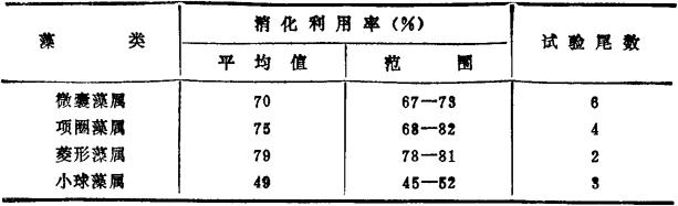 (长江水产研究所) 表35—3 尼罗非鲫对藻类的消化和用率(鱼体长9.5—12.5cm,水温14℃)