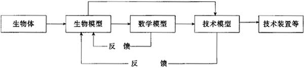图3.9.2-1 第一步,通过研究弄清生物体的某些结构与功能的关系,提炼出一个反映生物结构与功能的生物模型; 第二步,将生物模型变换成用数学语言来表达的数学模型(有时也可以直接由生物模型过渡到技术模型); 第三步,根据数学模型或直接根据生物模型,建立包含优异的生物原理的技术模型,即通过用电子线路、机械结构、化学结构等各种手段制成可在工程上进行模拟试验的技术模型; 第四步,通过对模型的反复试验及对试验结果的分析、综合和外推,最终实现生物原理的工程模拟,创造出实用的技术系统。 |