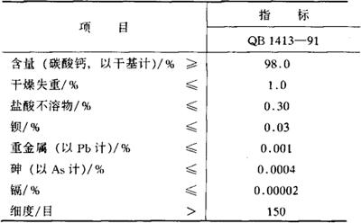 性状 白色微细粉末,无臭,无味,但易吸收空气中臭气,可溶于稀乙酸、稀盐酸、稀硝酸并产生二氧化碳,难溶于稀硫酸,几乎不溶于水和乙醇。在空气中稳定。