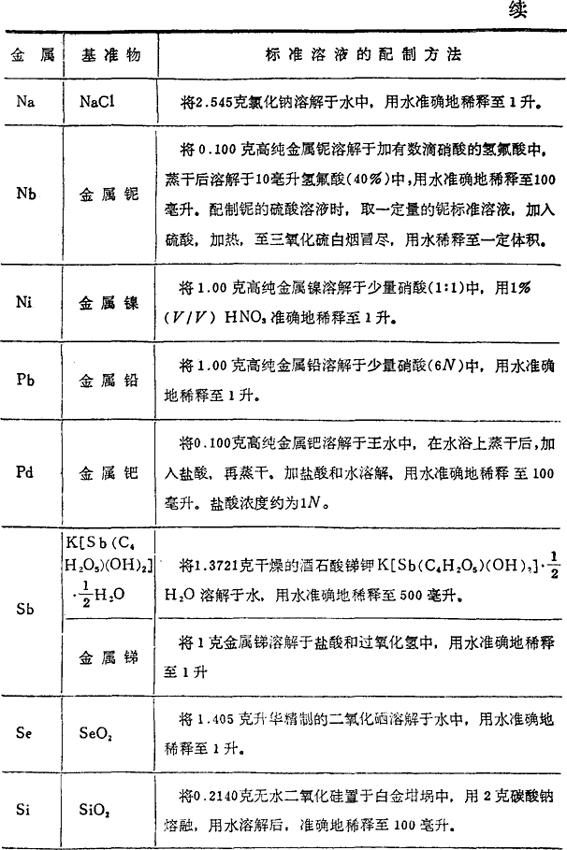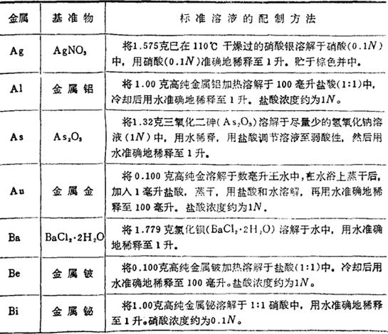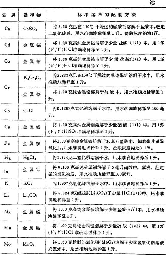| 释义 | 用于原子吸收分光光度分析的标准溶液 这里所示的标准溶液的浓度为1毫克/毫升,将其适当稀释即可制成测定用的标准溶液。稀溶液不能长期保存,使用时再配制。所列举的标准溶液大部分是氯化物。