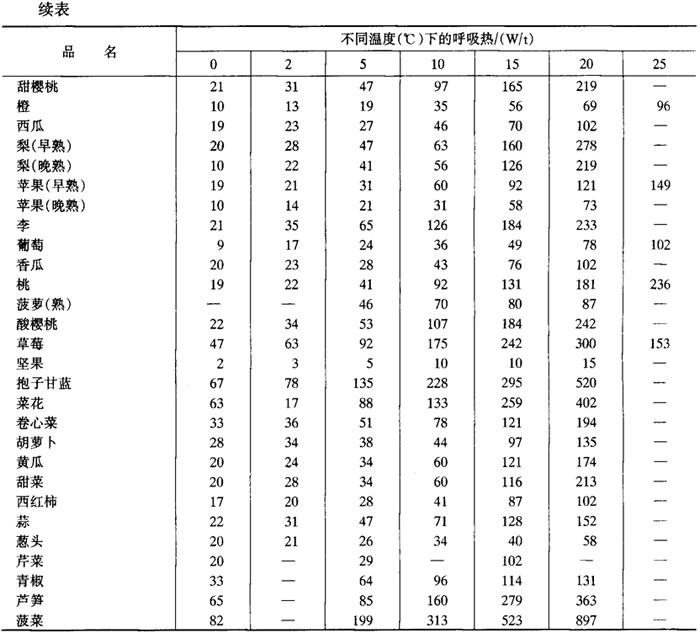 q1——货物冷却初始温度时的呼吸热量,kJ/kg,见表6-7-62 表6-7-62 一些主要水果与蔬菜的呼吸热