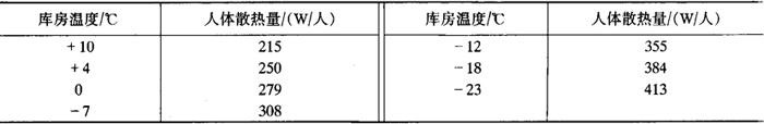 注:通风换气热量只适用于贮存有呼吸的食品的冷藏间,有操作人员长期停留的冷间如加工间、包装间应计算操作人员需要新鲜空气的热量Q3b。 ④库房操作管理的耗冷量Q4