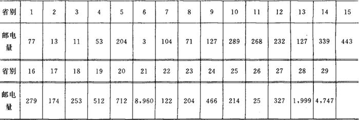 表1中的成本差异系数是用测算年度中实际总成本计算出来的,它是一个既受主观因素影响又受企业所处客观因素影响的随机值。 3.计算各省市每平方公里用户使用邮电量数据如表2中所示。 表2 单位:元/公里2