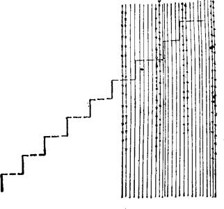 图5-3 水稻田间检验计数每米株数方法 具体步骤如下: 第一步,确定各点从田边走入检查点的步数,靠田边4点,可从田边走入数步,中心点至少走入20步。 第二步,测定每米行长株穗数,共测定5点,然后求出每米行长株穗数的平均。 第三步,确定每点计数每米长的个数。即1000除每米行长株数。 第四步,检查计数每点每米行长的株穗数,并记录每点的杂株数。最后求出各点的平均,并计算混杂率或品种纯度。 3)撒播作物田间检查计数方法 莴苣等作物的具体测定方法如下: 第一步,测定每平方米总株数,测定5个点,求平均值。 第二步,求出共需检查平方米个数,即1000除以每平方米株数。 第三步,检查测定每平方米内的株数和杂株数。直至达到所需的株数,并记录和计算。 4)中行距种植作物的田间检查计数法 菜豆、豌豆、绿豆、叶类作物、芥菜和芝麻等中行距种植作物的田间检查计数方法基本上同小麦。只是要求每点检查计数为500株。 5)宽行距种植作物的田间检查计数法 棉花、花生、马铃薯、番薯、瓜类和根茎作物等宽行距种植作物的田间检查计数方法如下(参考图5-4)。