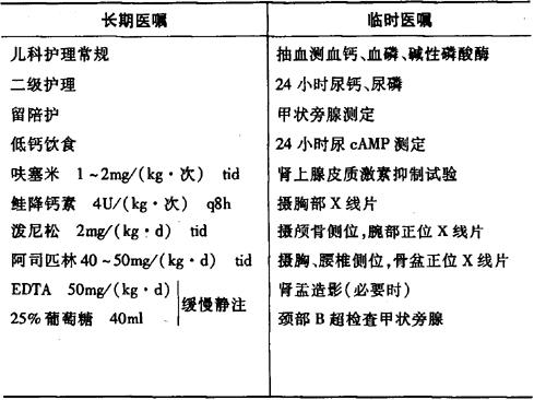 说明:1.有甲状旁腺瘤者可施行紧急手术切除。