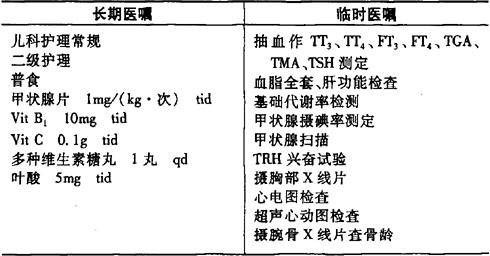 说明:1.甲状腺片宜从小剂量开始,每2~4周增加5~10mg/d,直至症状控制,T3、T4、TSH水平正常,以无临床症状时的剂量为维持量。