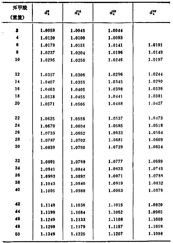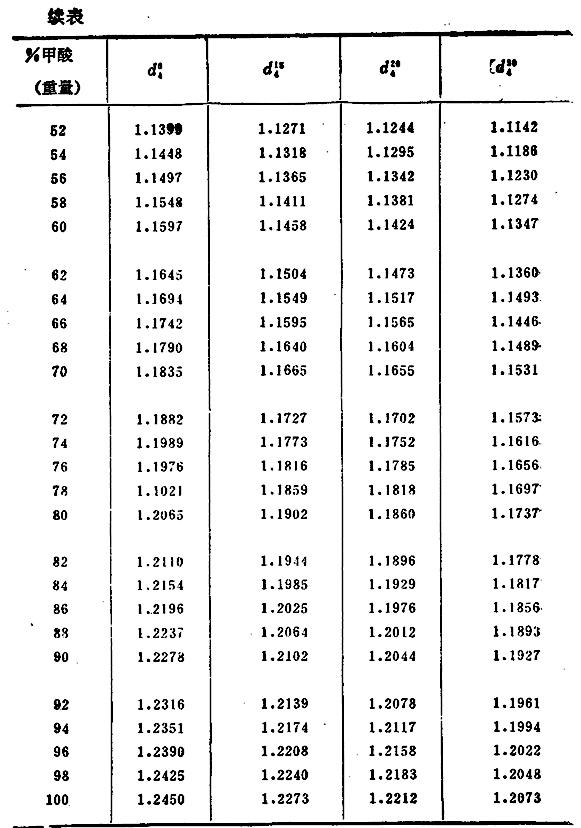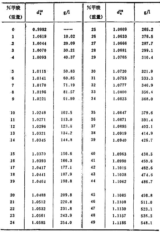 甲酸水溶液的相对密度和百分浓度
