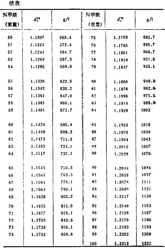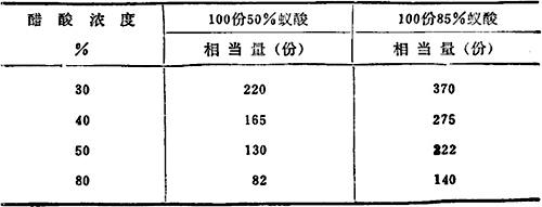 蚁酸与醋酸相当量换算表