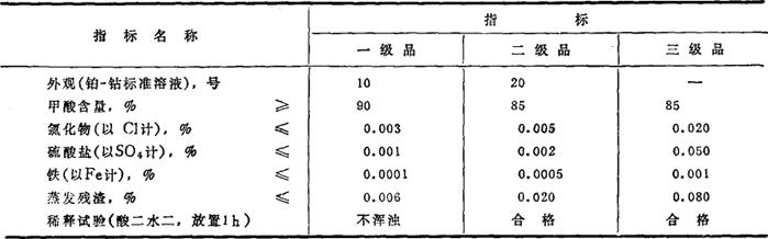 | 释义 | 甲酸 别名 蚁酸 结构式 HCOOH 分子量46.0 性能 无色发烟易燃液体,具有渗透性刺激臭味。溶于水、乙醇和乙醚。相对密度(d 质量规格 GB2093-80
