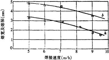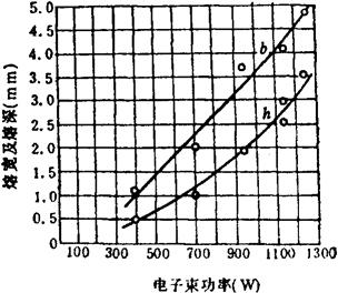 图6-26 电子束功率对焊缝成形的影响 (4)焊接速度:焊接速度Vb增加,线能量减小,焊缝熔深、熔宽均减小。图6-27是焊接不锈钢时的测量结果。
