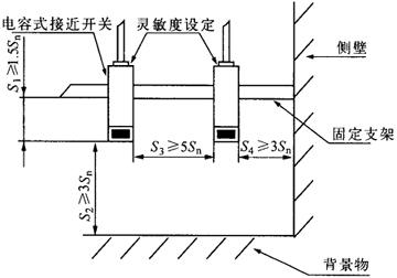 | 释义 | 电容式接近开关 1.适用范围 电容式接近开关适用于额定交流电压90~250V(除CM12外),额定直流电压10~30V的电路中,可对多种非金属,如纸张,橡胶,烟草,塑料,液体,木材及人体进行检测。 2.电容式接近开关工作原理 电容式接近开关一般有圆柱螺纹型、圆柱型和方型三种。属于一种具有开关量输出的位置传感器,它的测量头通常是构成电容器的一个极板,而另一个极板是物体的本身,当物体移向接近开关时,物体和接近开关的介电常数发生变化,使得和测量头相连的电路状态也随之发生变化,由此便可控制开关的接通和关断。这种接近开关的检测物体,并不限于金属导体,也可以是绝缘的液体或粉状物体,在检测较低介电常数ε的物体时,可以顺时针调节多圈电位器(位于开关后部)来增加感应灵敏度,一般调节电位器使电容式的接近开关在0.7~0.8Sn的位置动作。 3.电容式接近开关安装要求 电容式接近开关安装要求见图1-128。