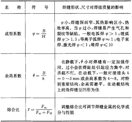 表1.3-2 焊缝形状、尺寸对焊接质量的影响