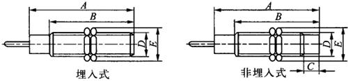图1-122 圆柱型系列电感式接近开关尺寸 表1-156 圆柱型系列电感式接近开关的外形尺寸