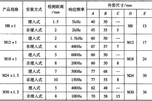 图1-121 圆柱螺纹型系列外形尺寸 表1-155 圆柱螺纹型系列电感式接近开关的外形尺寸