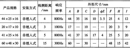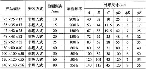 注:交流的响应频率为25Hz。 (5)方型系列电感式接近开关的外形尺寸见图1-125和表1-159。