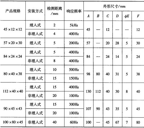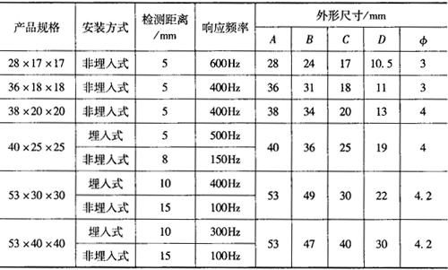 图1-120 电感式传感器工作原理 3.电感式接近开关的常用型号及主要技术参数 电感式接近开关的主要技术参数见表1-154。 表1-154 电感式接近开关的主要技术参数