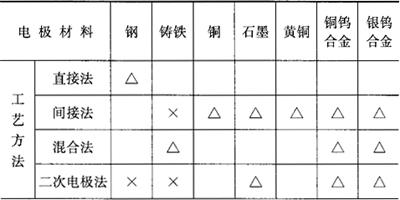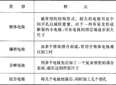 (三)型腔模电火花用电极 1.穿孔加工用电极 类型及特点见表7.4-3,材料选择见表7.4-4,长度计算见表7.4-5,截面尺寸计算见表7.4-7。 表7.4-3 电极类型和特点