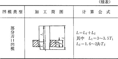 注:T——全刃口凹模厚度,T1——部分刃口凹模刃口高度,T2——部分刃口凹模漏料部分高度,βT——精加工时电极端面的损耗比,按表7.4-6选取。 表7.4-6 精加工时电极端面的损耗比βT(%)