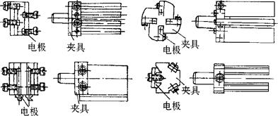 图7.4-5 用通用电极夹具装夹 大型石墨电极的拼合装夹方法如图7.4-6所示。石墨电极和连接板的固定方法如图7.4-7所示。