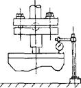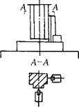 图7.4-7 石墨电极与连接板的固定 电极装夹后,应检查其垂直度。用精密角尺校正电极垂直度的方法见图7.4-8。用千分表校正见图7.4-9。型腔加工用电极的校正方法见图7.4-10。电极与工件间的定位方法见表7.4-10。