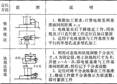 图7.4-10 型腔加工用电极的校正 表7.4-10 电极与工件间的定位方法