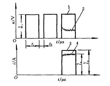 图3-2 方波脉冲电源电脉冲参数 1—空载(开路)电压波形;2—火花放电电压波形;3—短路电流波形;4—火花放电电流波形.