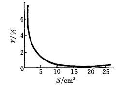 图3-10加工面积与工具电极相对损耗率的关系 加工条件:工具电极材料—紫铜;工件材料—CrWMn钢;加工极性—负(工件);加工介质—煤油;电源—晶体管电源;脉冲峰值电流—48A,平均电流—32A;脉宽—1000μs