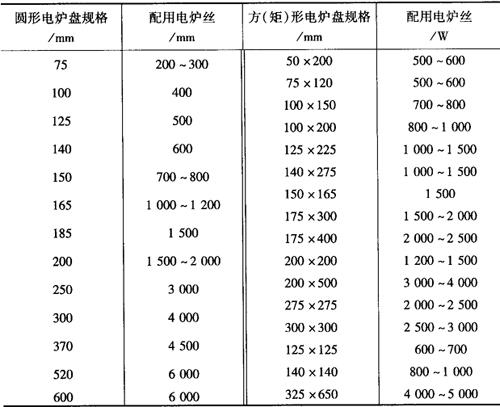表10-3 电炉盘和电炉丝的配用