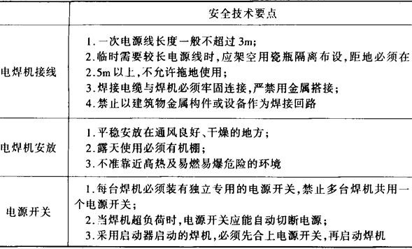 表15-17 电焊设备操作安全要点