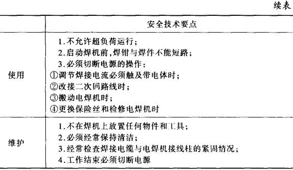 2.电焊设备操作安全要点(见表15-17)