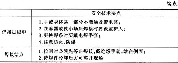 表15-19 电焊操作安全技术要点