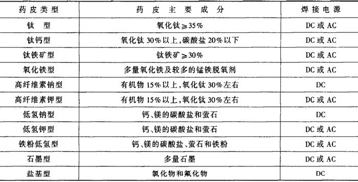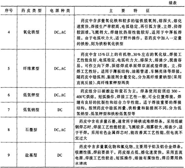 表1-2-3 焊条药皮类型及主要特点[2,5]