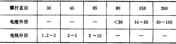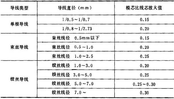 ②模芯承线长度 表4-7-9 导线芯径与模芯承线长度之关系 (mm)