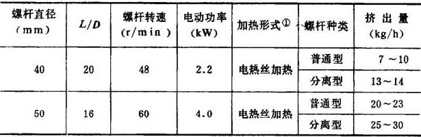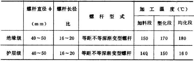 表4-7-7 常用挤出成型机工艺参数