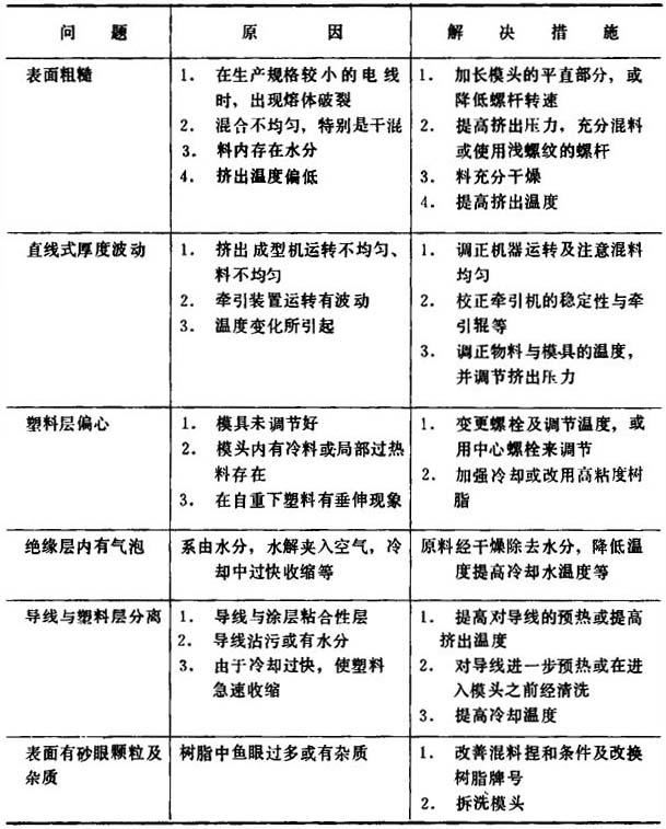 ①除电热丝加热外,还有感应加热。其缺点是热量不易散发,往往使塑料过热而导致电线外表不好,如用内冷却螺杆时,则以感应加热较好,且耗电量也少。 (2)挤出量与导线,包覆层外径及牵引速度的关系 选用挤出成型机时,可用下式计算求得导线外径、包覆层外径和牵引速度等与挤出量的关系。