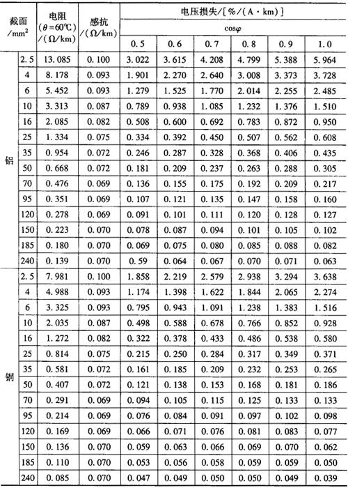表12-52 6kV油浸纸绝缘电力电缆的电压损失