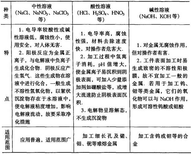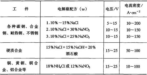 常用的3种中性电解液比较见表7-4;几种中性电解液配方及电参数见表7-5. 表7-4 常用的3种中性电解液
